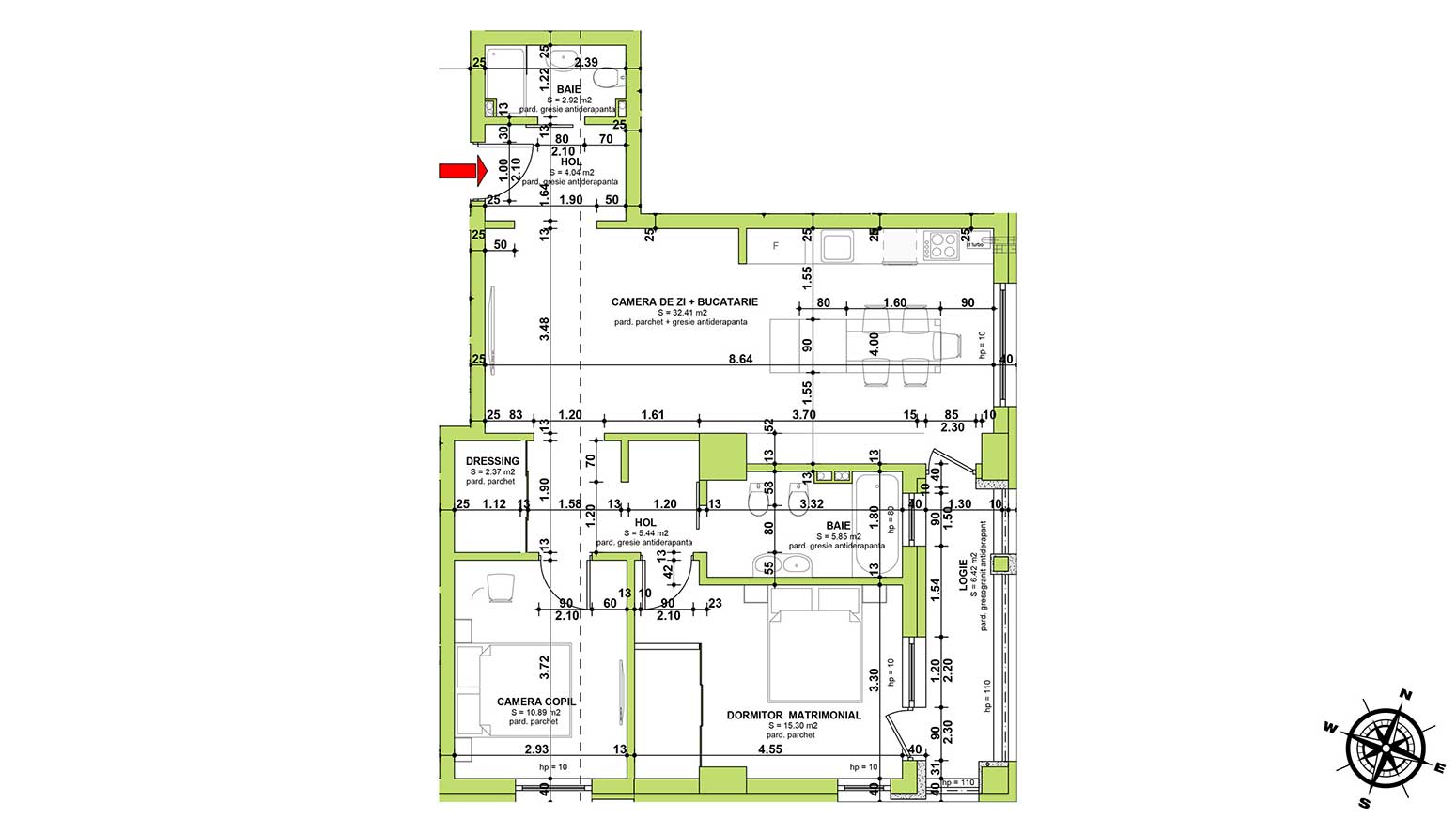 | Camera de zi + Bucatarie | 32.41 m² m2 |